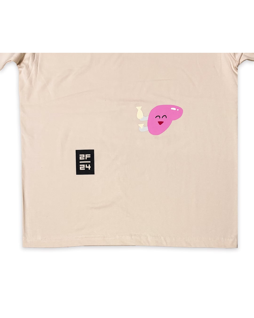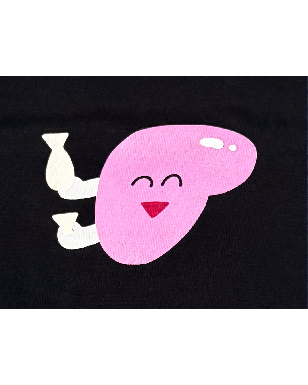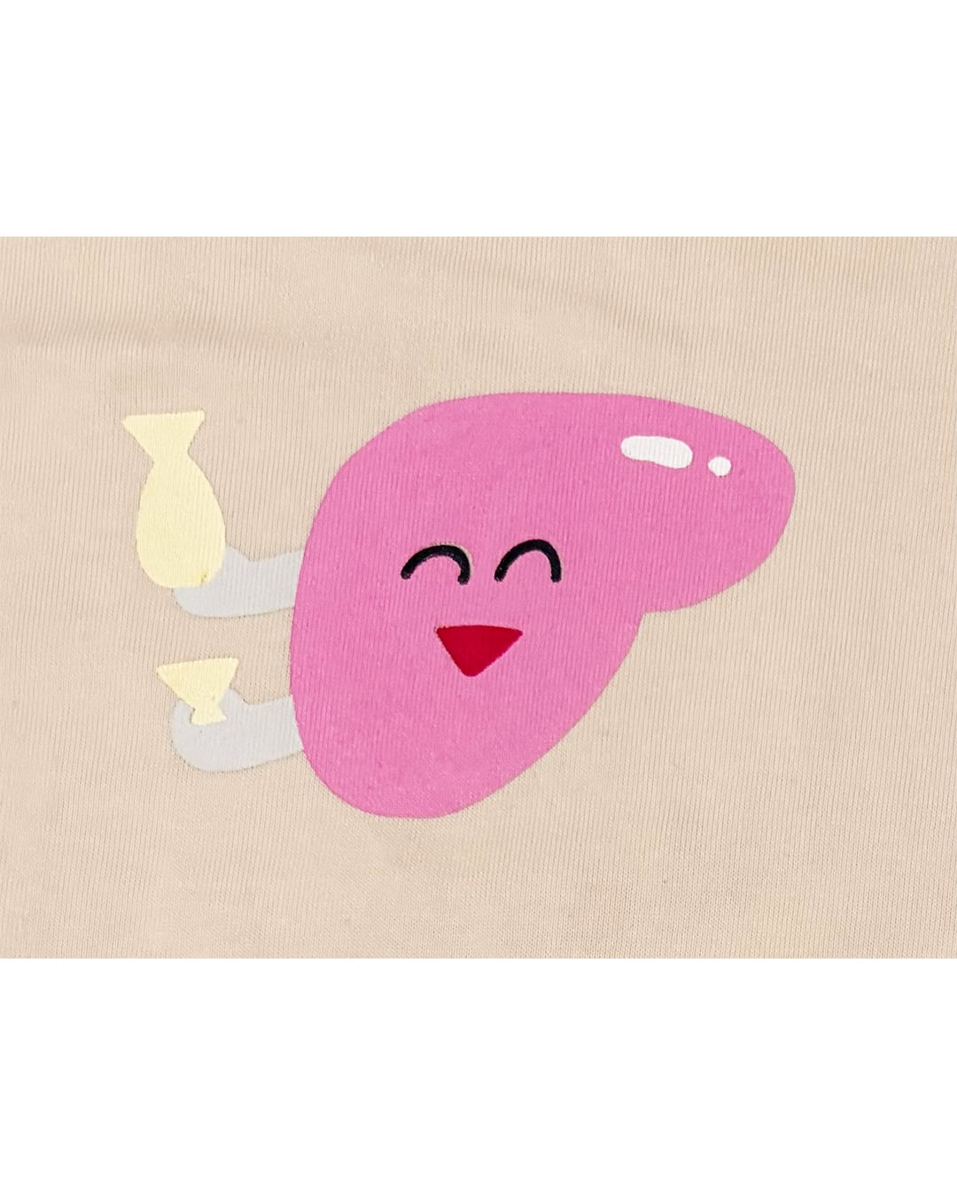 後ろ身頃の肝臓あたりの位置に健康な状態の肝臓くん(実際よりも小ぶり)が入ることにより健康を後ろ姿で語れるという利点もある気がしています。