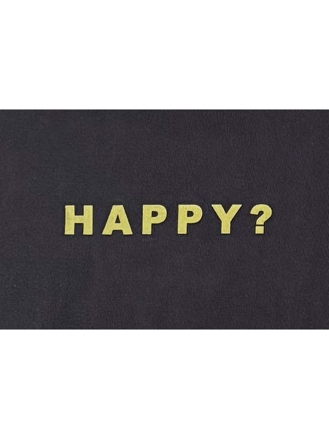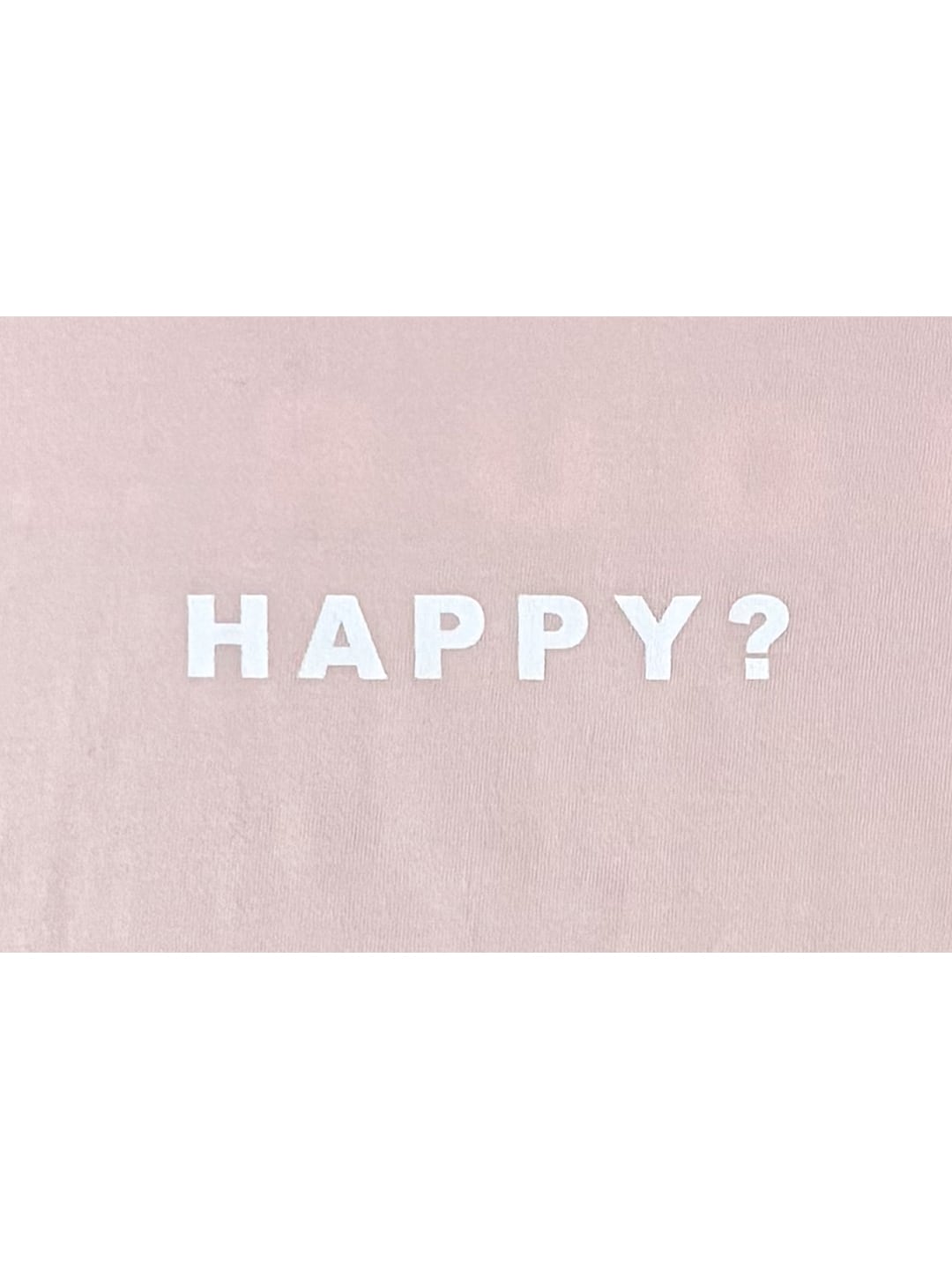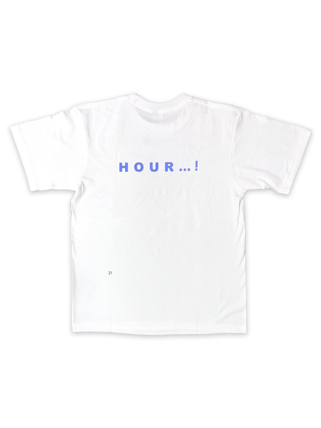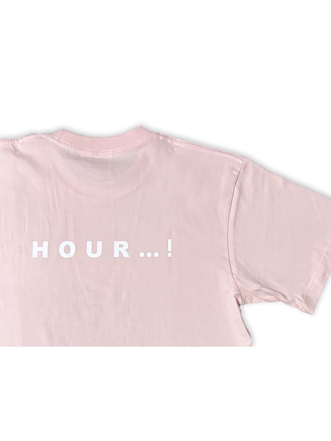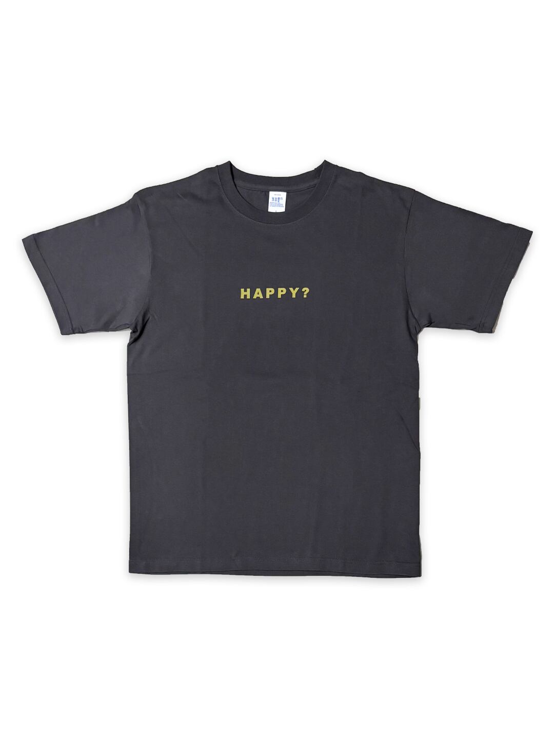 フロントに「HAPPY?」、バックに「HOUR..!」とプリントされたTシャツ。
