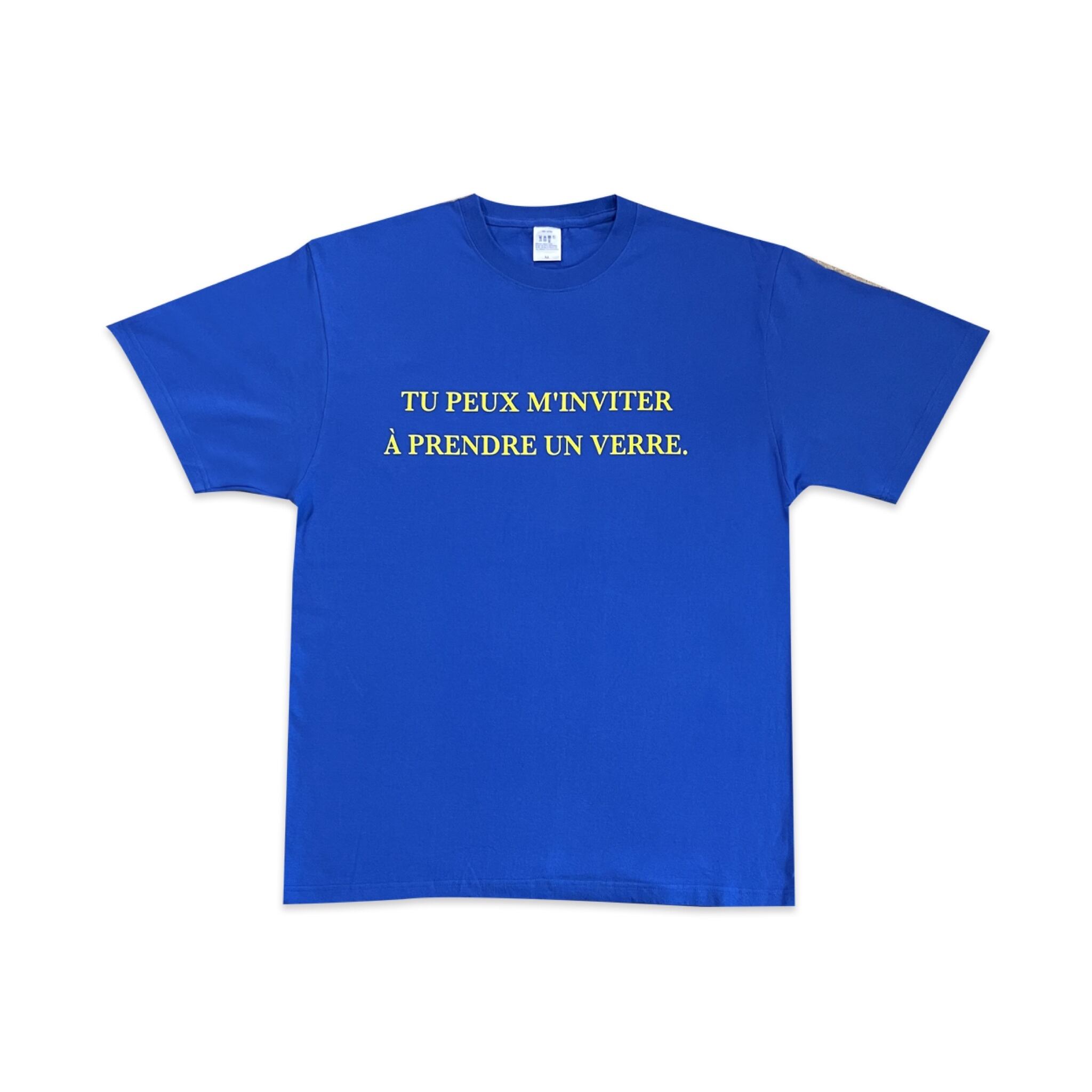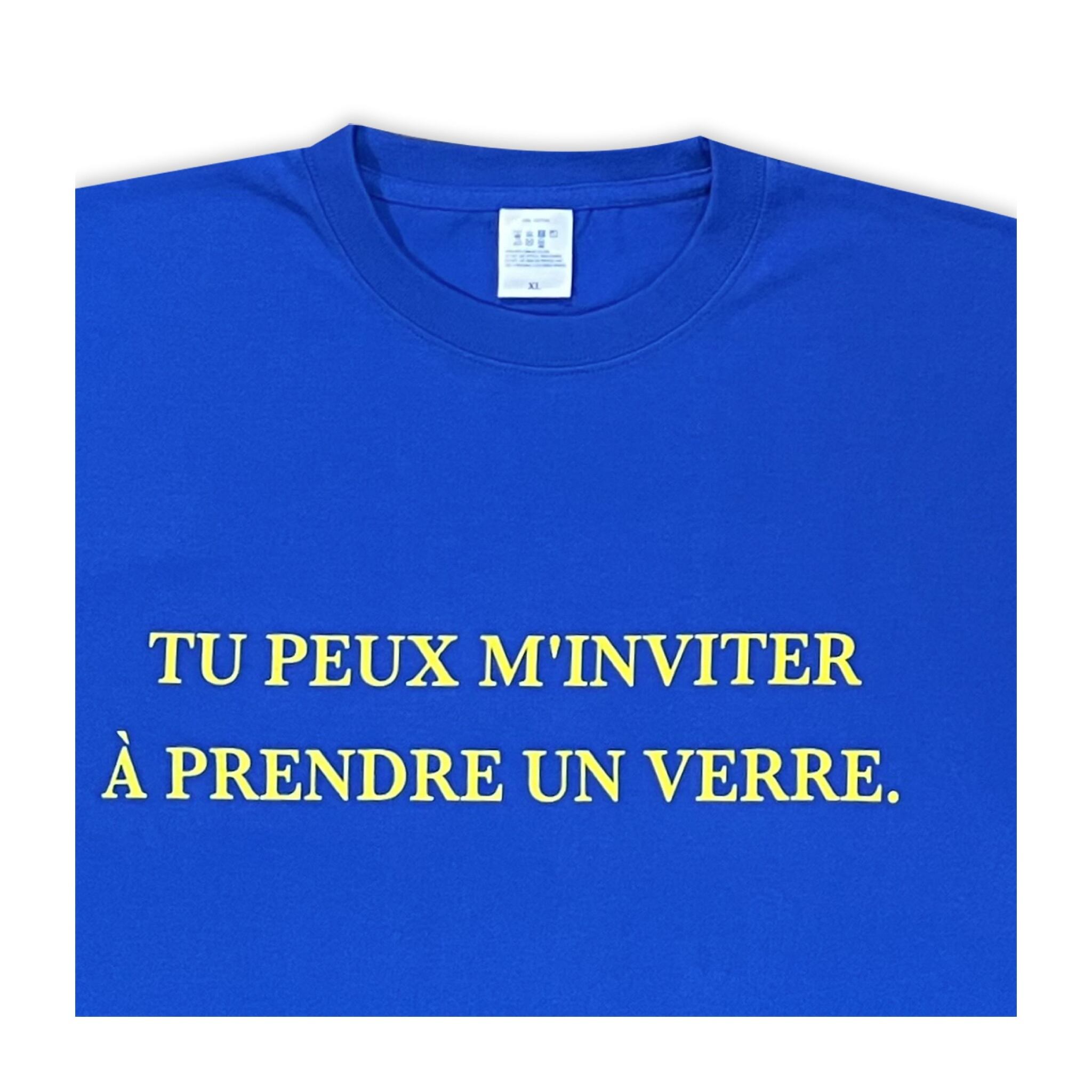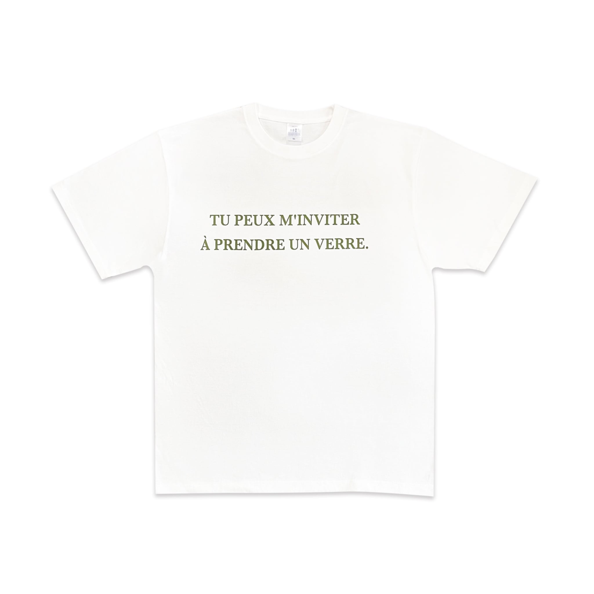 「1杯、おごってくれてもいいんだよ?」的な意味がフランス語でプリントされています。