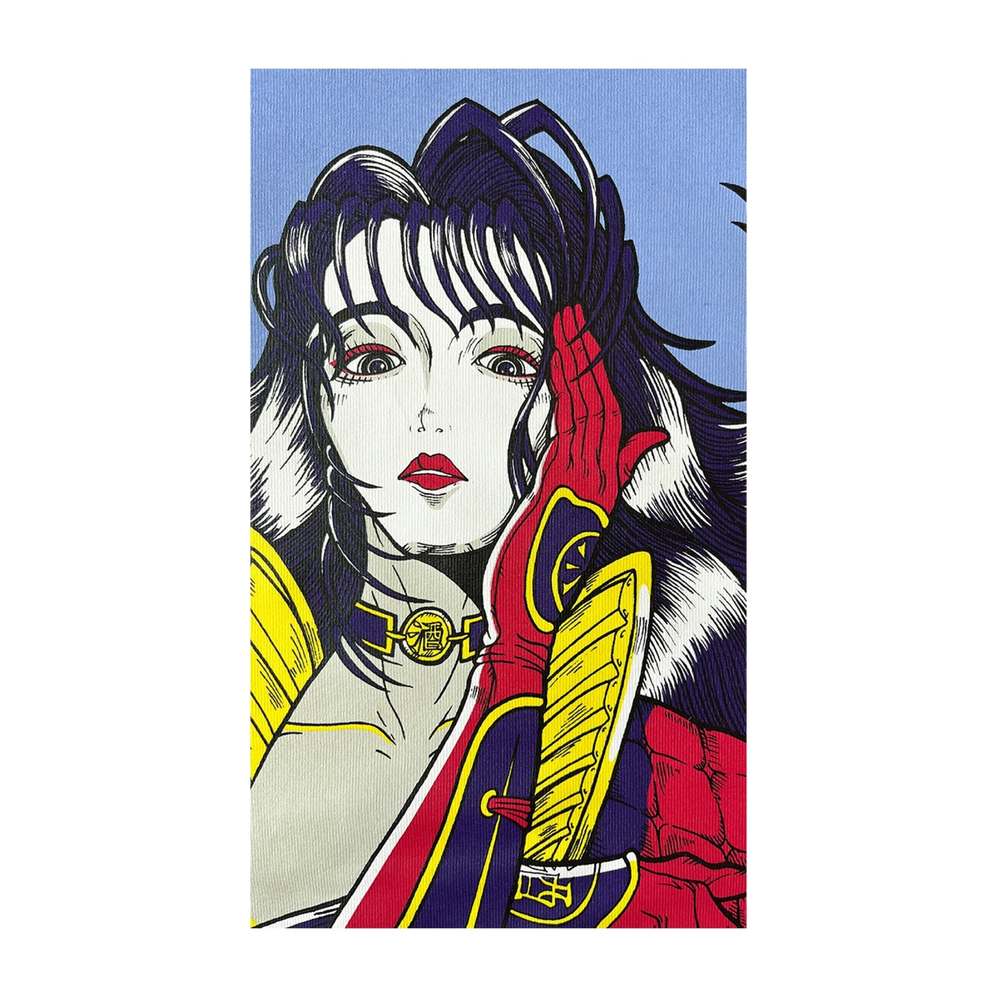 飲酒を愛し、酒のために戦う酒ヒロイン的な女性がプリントされたTシャツです。