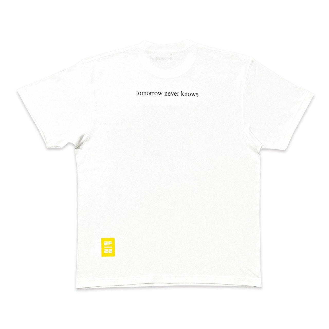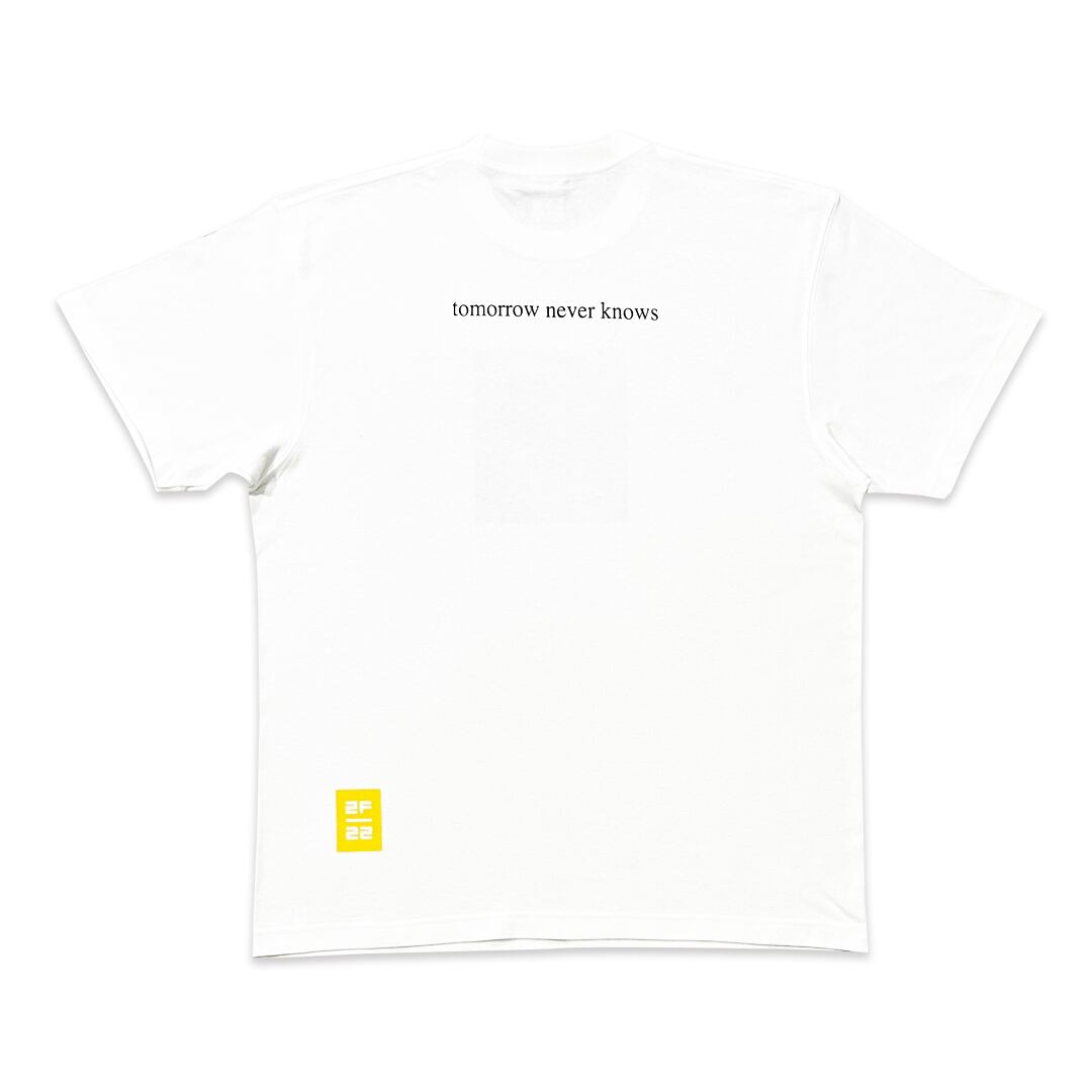 バックに"tomorrow never knows"の文字がプリントされています。