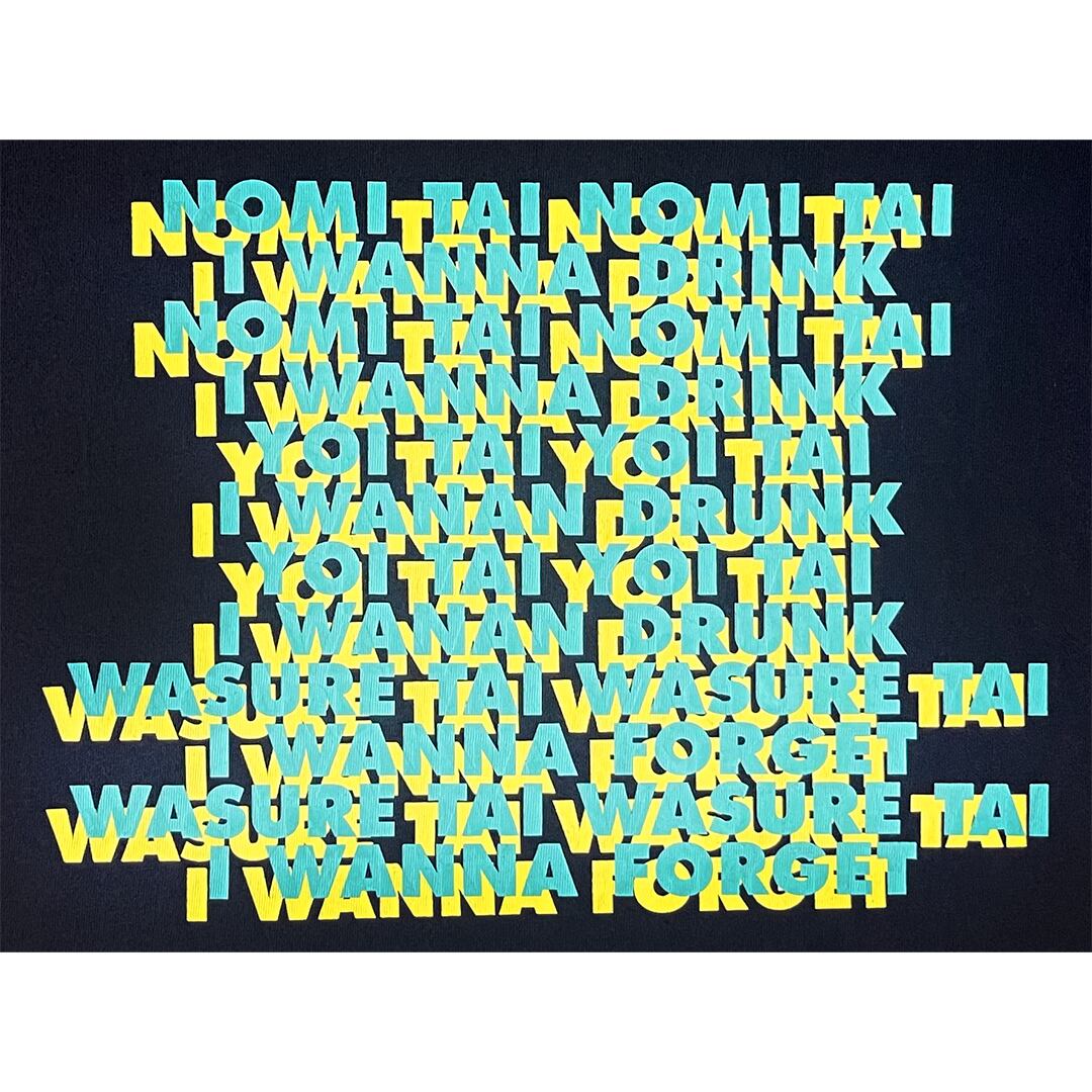 「I WANNA DRINK, I WANNA DRUNK, I WANNA FORGET」の英語で前後にプリントされています。