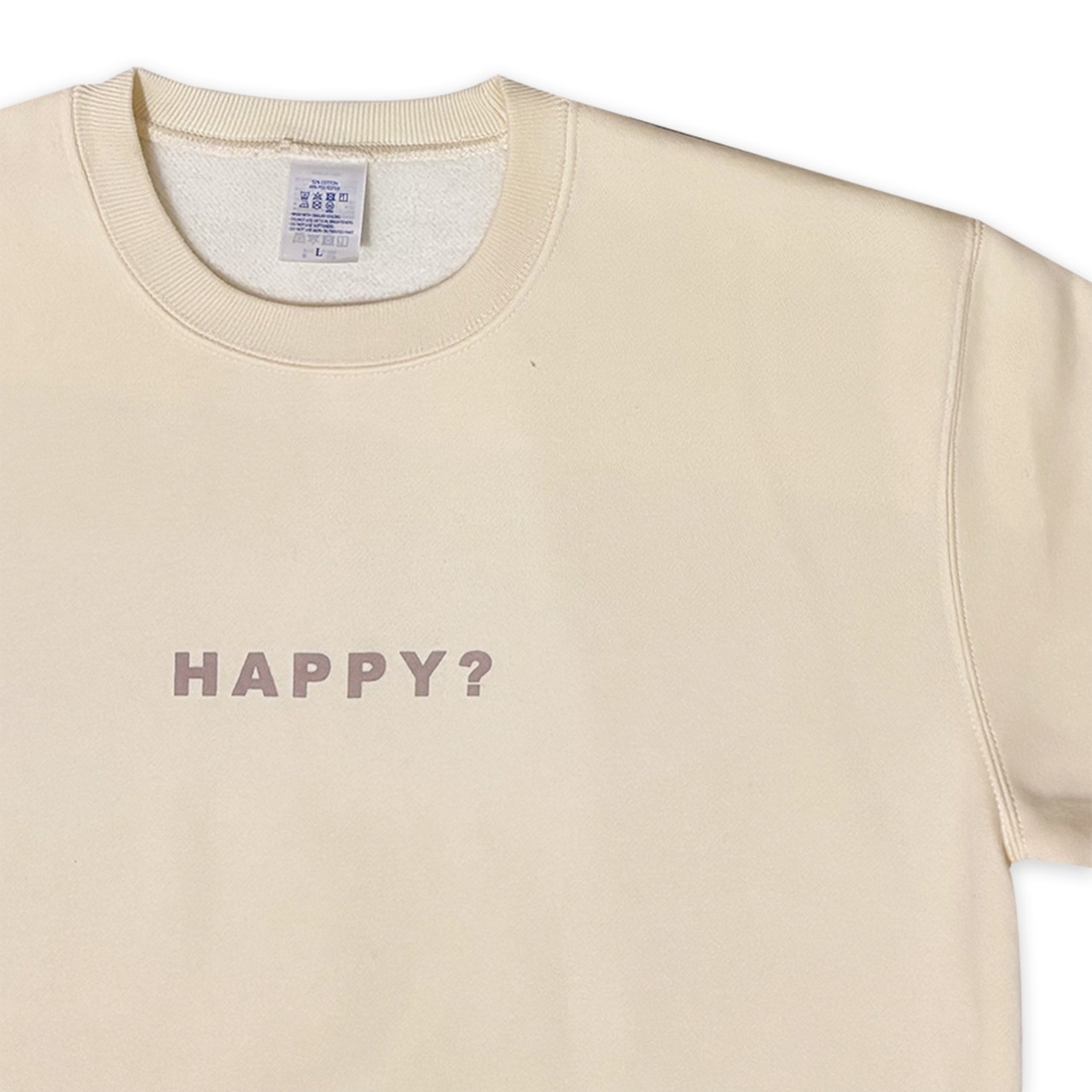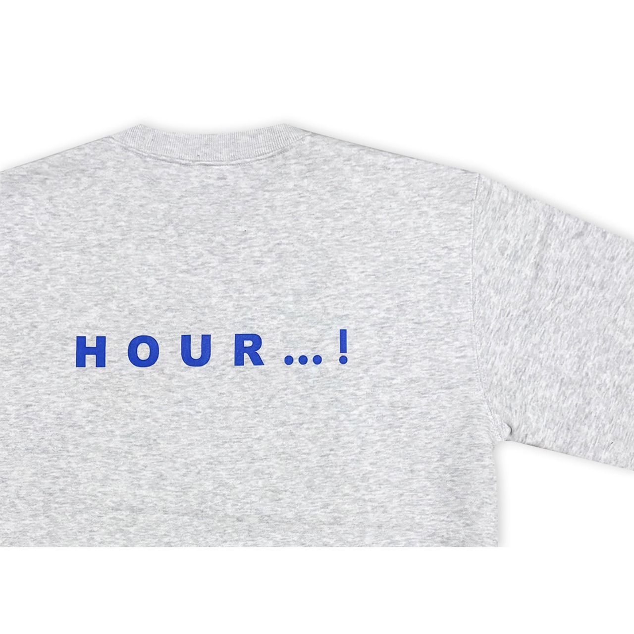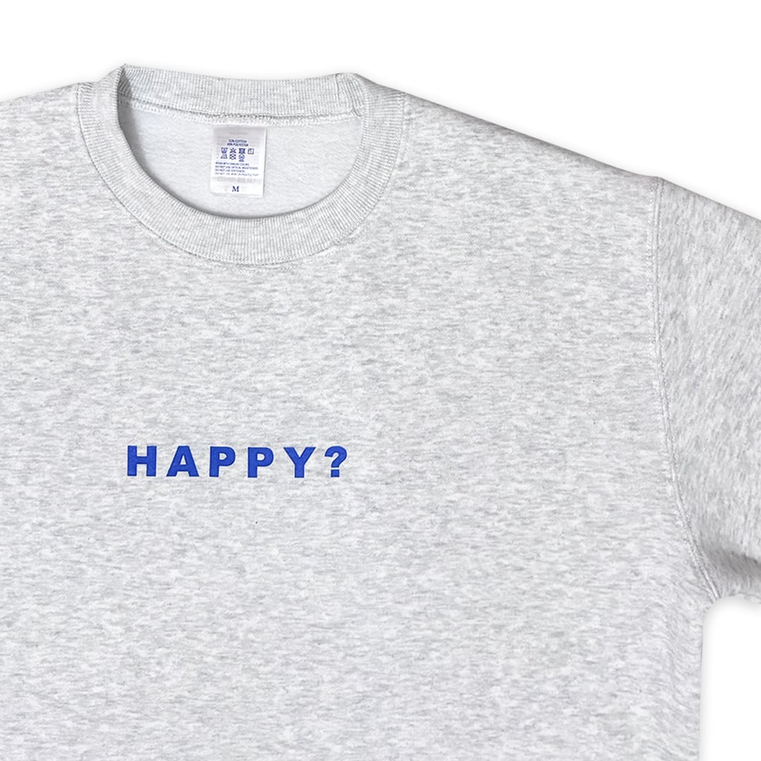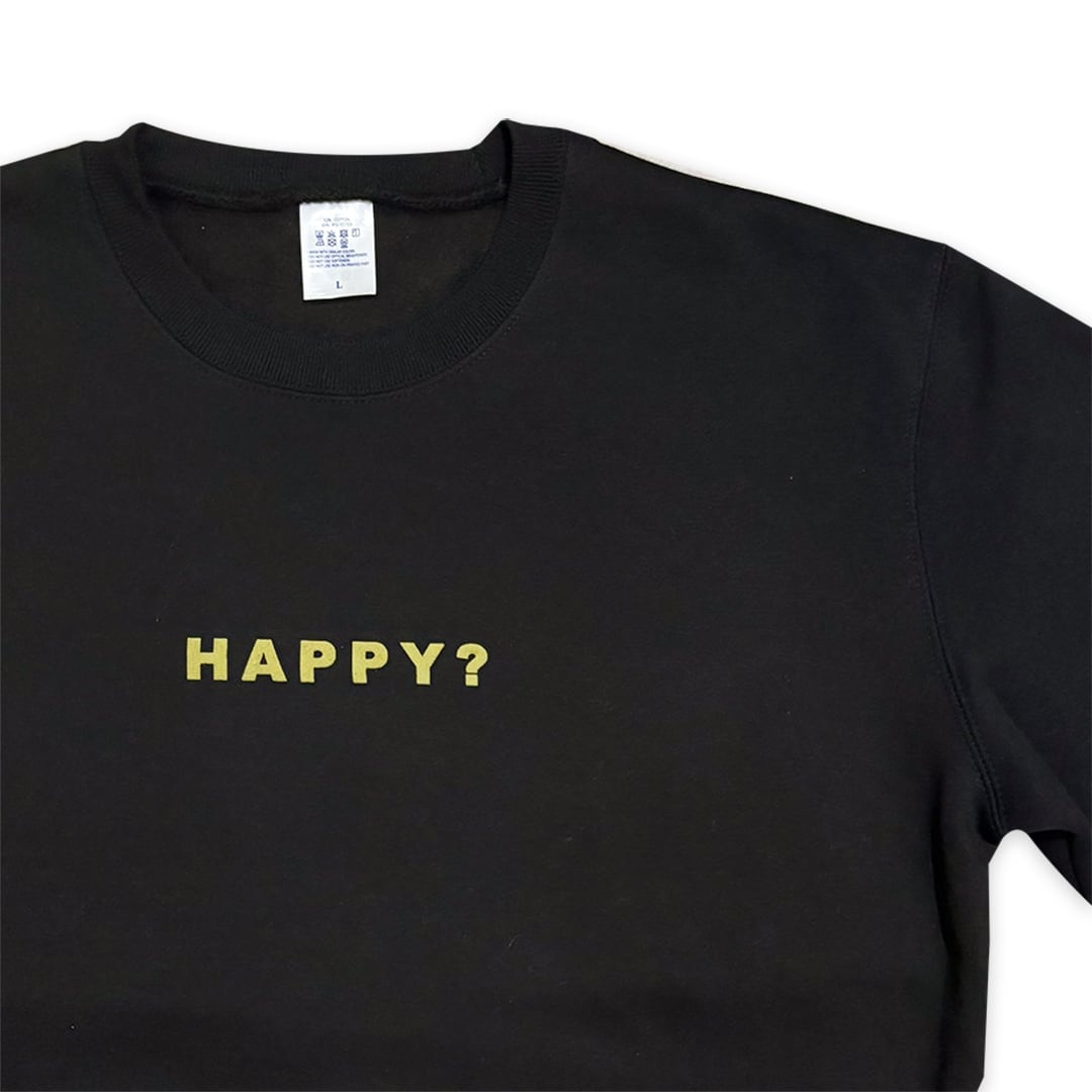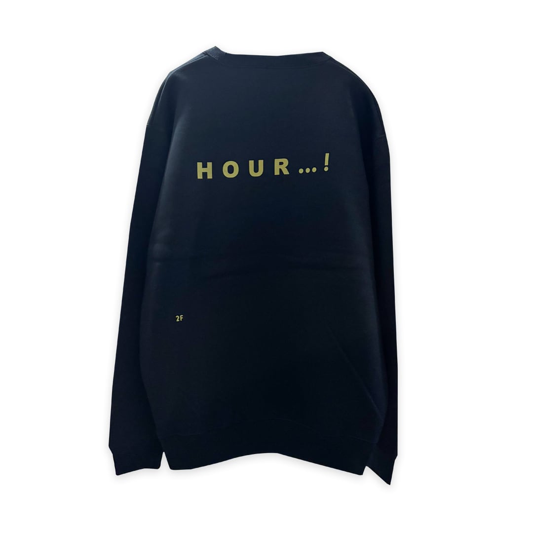 フロントに「HAPPY?」、バックに「HOUR..!」とプリントされたスウェット。